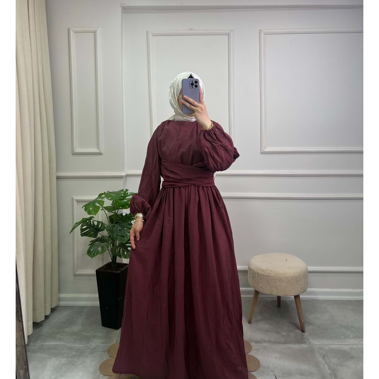 KENDİNDEN KRIŞIK KUMAŞ ELBİSE