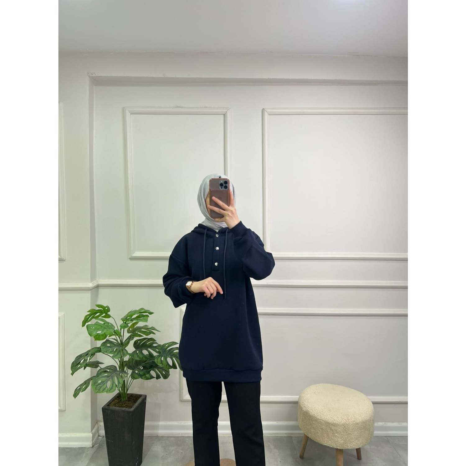 844 YAKASI ÇITÇITLI KAPŞONLU ŞARDONLU SWEAT